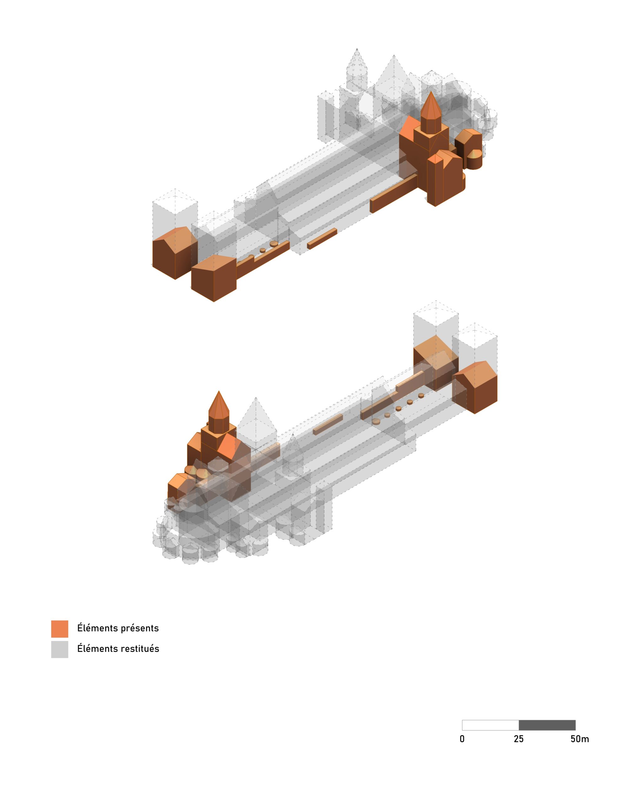 Conservation Practice’s work ranged from the historical and cultural analysis of the values of the different components to the coordination of technical and graphic documentation, ensuring the quality and robustness of the nomination process. In this context, three-dimensional models of the buildings corresponding to the sites included in the nomination were developed to identify, map, and interpret both tangible and intangible values and attributes, as well as to analyze their conservation status.